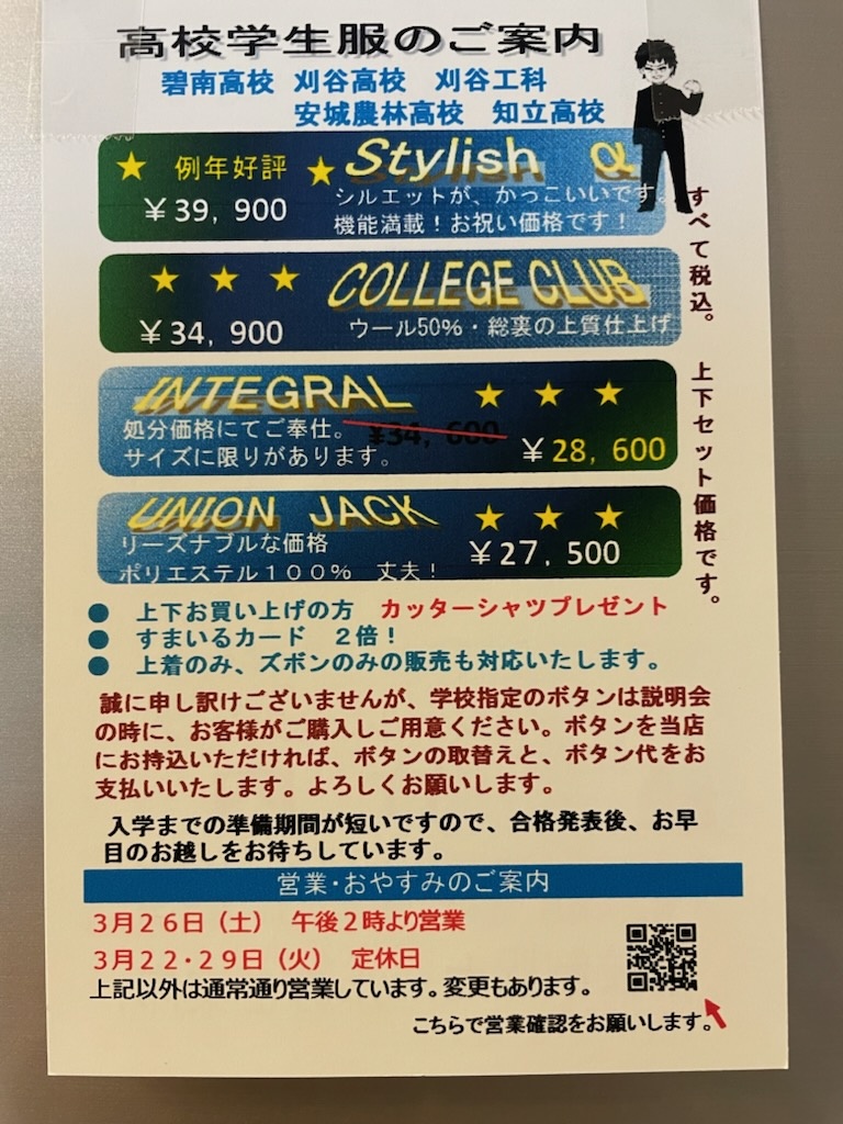高浜高校 知立東高校 刈谷北高校 取り扱っておりません。