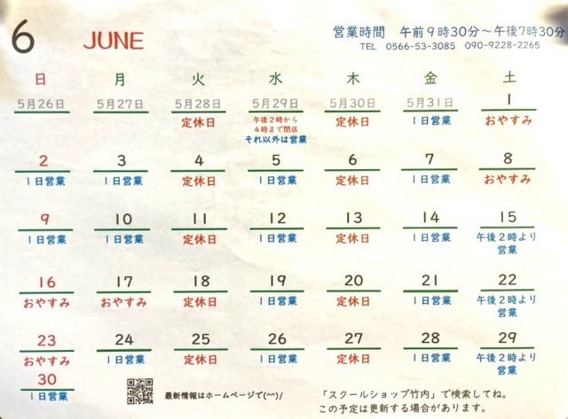 6月の予定です♪