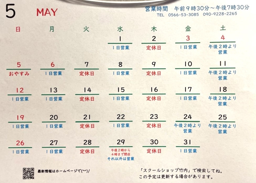5月の予定(5月17日変更) 【2024.05.17】