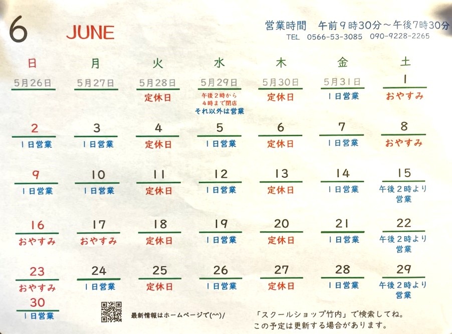 6月の予定 【2024.05.31】